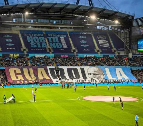 在现场的照片当中可以看到,比赛开始前,阿提哈德球场展现了巨大的TIFO,向瓜迪奥拉致敬,其中横幅写道:“我们拥有瓜迪奥拉,1000场比赛”。